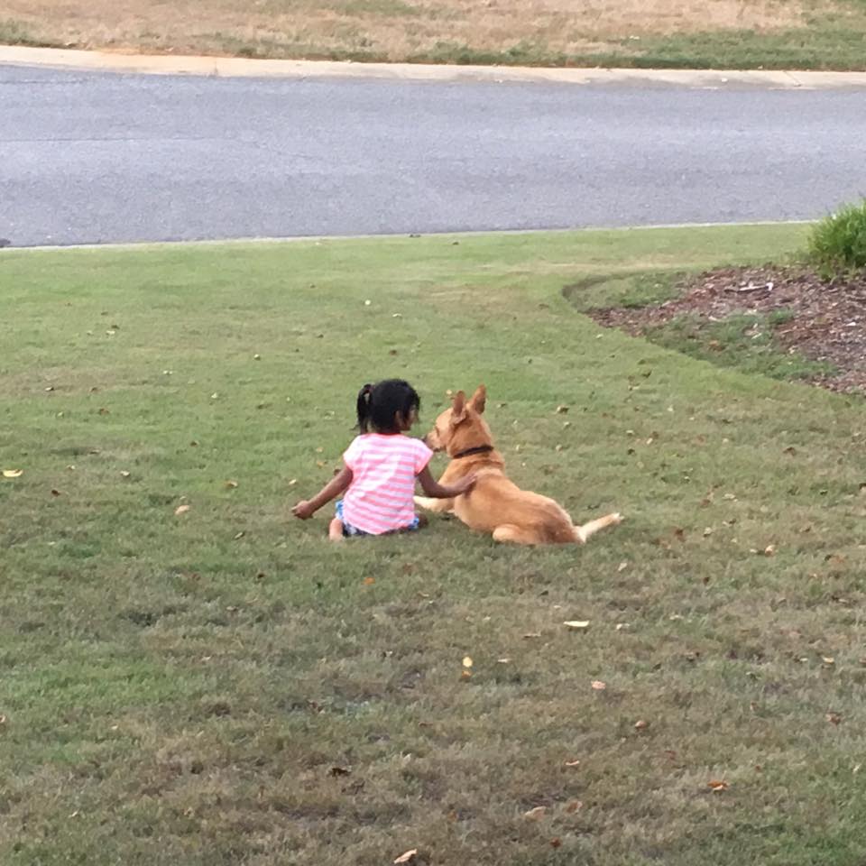 ಪುಟ್ಟ ಮೀನಾ ಟಿನ್ ಟಿನ್ ನನ್ನು ವಾಕ್ ಗೆ ಎಳೆಯುತ್ತಿದ್ದಾಳೆ